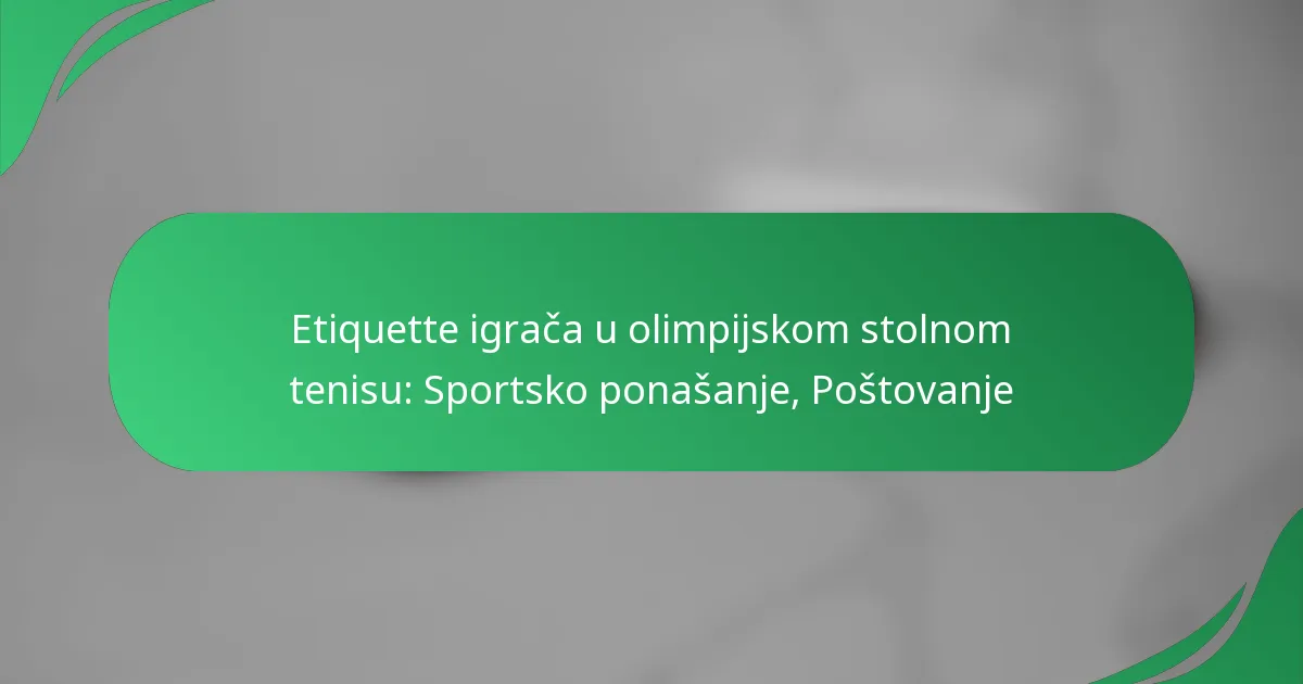 Etiquette igrača u olimpijskom stolnom tenisu obuhvaća ponašanja i stavove koji su bitni za poticanje poštovanja i natjecateljskog okruženja. To uključuje pokazivanje sportskog duha, poštovanje protivnika i službenika te pridržavanje načela fer igre. Prihvaćanjem ovih vrijednosti, igrači ne samo da poboljšavaju vlastito iskustvo, već također doprinose integritetu sporta u cjelini.